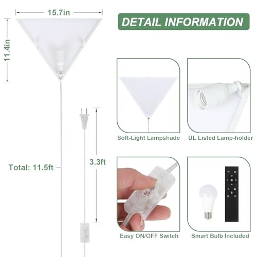 【Remote & APP Control】This corner lamp is designed with toggle switch on the cord and comes with a remote. When the toggle switch on, you can effortlessly adjust brightness (0%-100%) from up to 65ft away by the remote control or app control. It also has 1H Timer function for adding convenience during sleep.