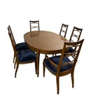 Drexel 7 Pc Oval Dining Set Table Pads Blue Chairs