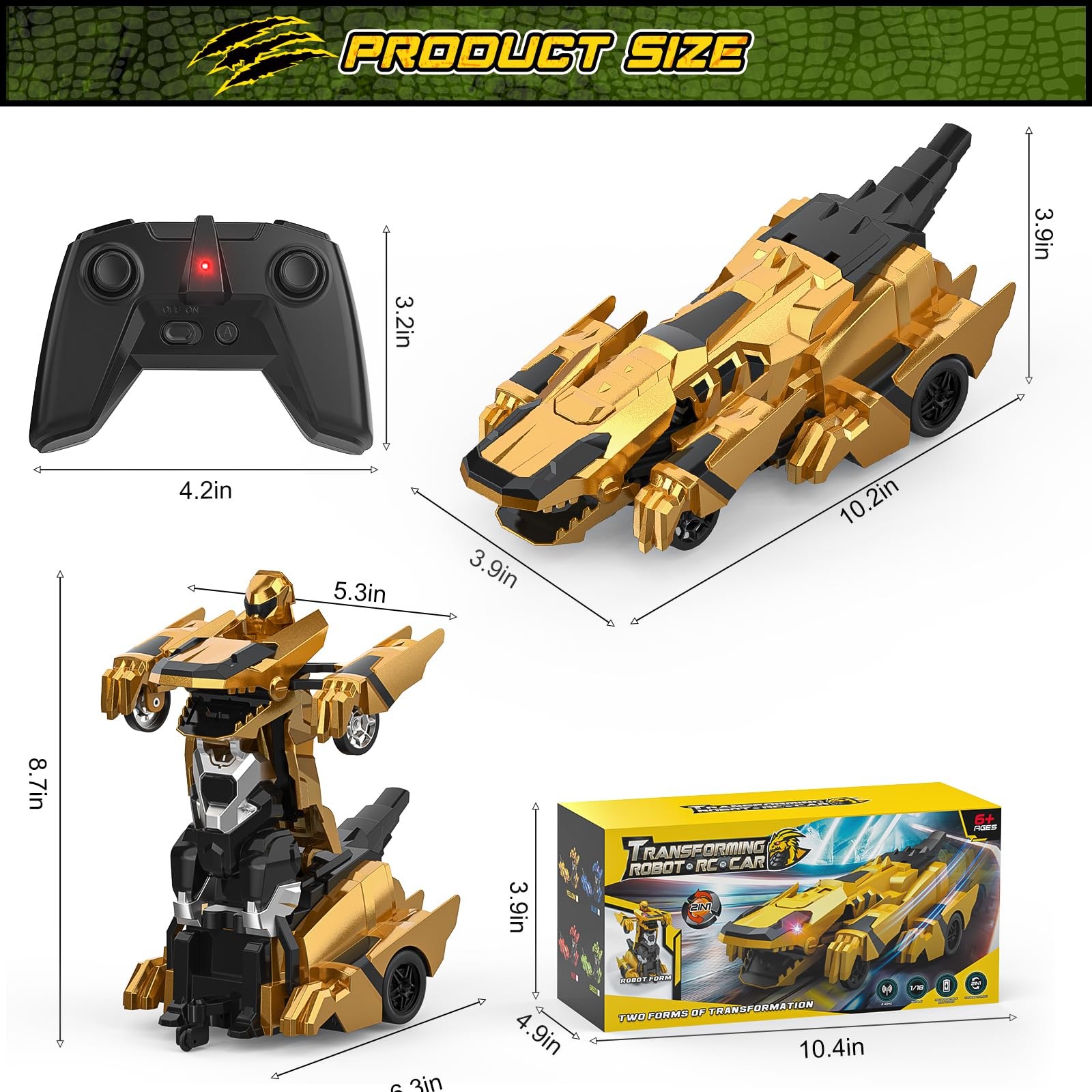 Intelligent One-Button Transforming: This dinosaur transform RC car can smoothly transforms into a robot and back with a simple press of a button. This is a great toys combines robot and remote control car features for 3 4 5 6 7 8 9 10 11 12 year old boys and girls