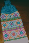 Crochet Top "Turquoise Print Design" Hanging Kitchen Dish Towel (full towel)