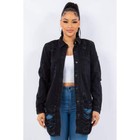 American Bazi Distressed Button Up Long Sleeve Denim Jacket