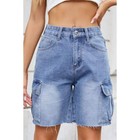 Raw Hem Washed Denim Shorts with Cargo Pockets