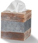 Rustic Metal & Distressed Wood Square Tissue Box Cover Decorative Bathroom