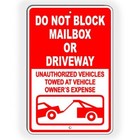 Do Not Block Mailbox Sign No Parking Vehicle Will Be Towed Owners Expense Metal