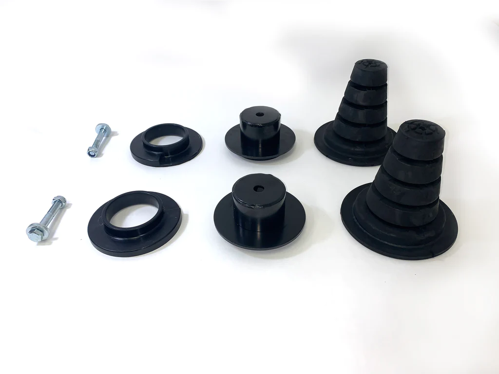 Dobinsons offer this bolt in conversion kit, to be able to convert the factory rear airbag suspension to use Dobinsons coil springs. Properly molded lower coil spring poly isolator to ensure the spring doesn't move out of position, and doesn't create any noise.� Kit includes:� 2 poly coil isolators for base of the coil to capture the pigtail correctly, and 2 OE type rubber upper coil isolators with built-in bump stops. This kit was designed for and will work on all rear airbag-equipped Toyota Land Cruiser Prado 120 and 150 series, as well as Lexus GX470 and GX460 models.