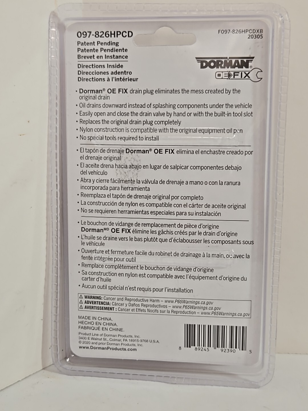 The Dorman 097-826HPCD Engine Oil Drain Plug is designed for select 2011-2023 Ford and Lincoln models. Made of orange nylon material, this plug is a vital component for draining engine oil during maintenance. The manufacturer part number is 097-826HPCD, and it is an interchangeable part with number KX6Z6730B. This high-quality drain plug is a reliable choice for ensuring proper maintenance of your vehicle's engine.