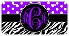 Dots Zebra Print Lavender Personalized Monogrammed License Plate Custom Car Tag