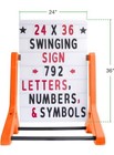 Swinging Changeable Message Sidewalk Sign: 24" x 36" Sign with 792 Pre-Cut Do...