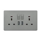 double switched power socket with 2 USB charging ports, screwless flat plate
