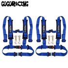 2 X UNIVERSAL BLUE 4 POINT BUCKLE RACING SEAT BELT HARNESS WITH SHOULDER PADS