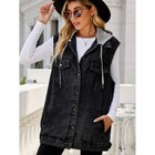 Drawstring Hooded Sleeveless Denim Jacket