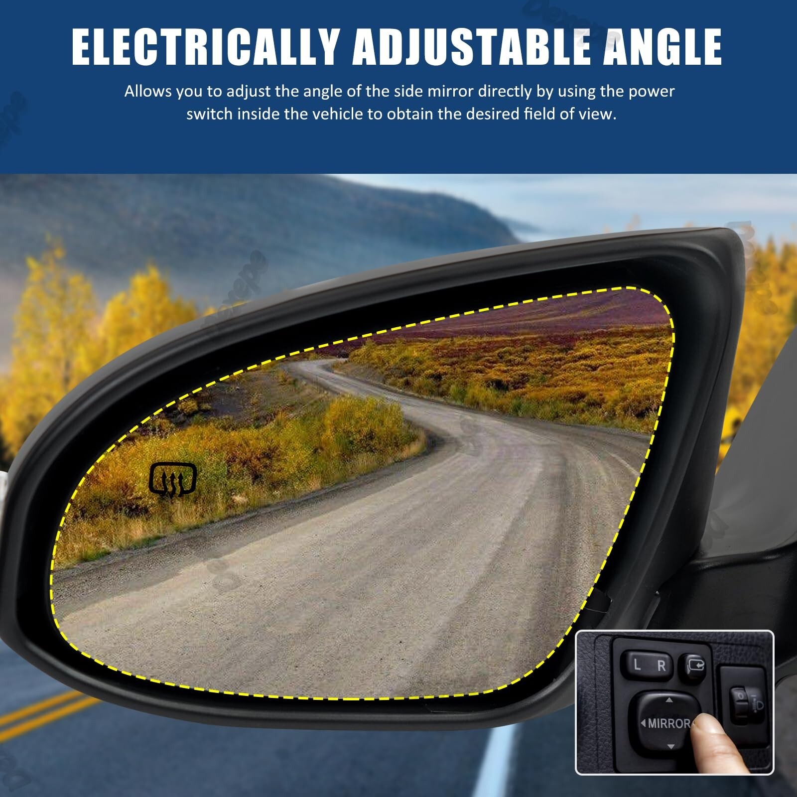 [Electrically Adjustable Angle] You can directly use buttons inside the car to electrically adjust the mirror to obtain the desired field of view.