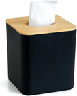 Black Tissue Box Cover,Tissue Holder, Black and Bamboo Lid, Cube Decorative Tiss