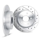 DFC Premium Performance Brake Rotors are engineered for performance at a great value. Drilled and slotted rotors will grab more bite to the brake pads giving you shorter stopping distance especially in wet weather. The drilled holes will reduce the heat that builds on the rotor. The slots on the rotor remove brake and road debris and prevent pad glazing.Formulated with the G3000/G11H18 cast iron specification, DFC GEOSPEC Coated Brake Rotors are engineered to match OEM specifications for durability, reliability, and stability. Each rotor casting is sent to our state of the art machining facilities, where it is processed to the tightest tolerances available in the market today. Then, the rotor is prepared with a non-directional finish to promote a faster and more even brake pad bed-in, along with quieter and smoother stops. Finally, all vented rotors are 100% inspected for balance and are corrected if necessary with our state of the art electronic mill-balance process. After all of the machining processes are completed, each rotor passes a 100% inspection station that measures all critical attributes to ensure that each rotor meets OE specifications. This further guarantees that each and every rotor delivered to you is trouble free. DFC provides a 12 month - 12,000 mile limited warranty against defects in material and workmanship.