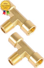 2 Pack 1/4" NPT Brass Tee Pipe Fitting T Shape Connectors 1/4" NPT Female X 1/4"