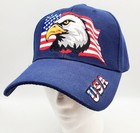 USA EAGLE & Flag Baseball Hat ADJUSTABLE Cap One Size Blue Embroidered