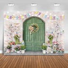 Easter Backdrop Green Wooden Doors Brick Wall Bunny Rabbit Spring Photography B