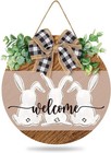 Whaline Easter Wooden Hanging Sign Bunny Rabbit Welcome Sign Door Decoration wit