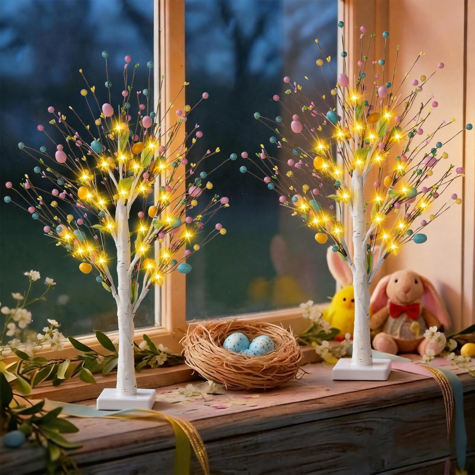 Easter Decorations 2 Pcs 25inch Lighted Easter Tree with Timer&Battery Operat...