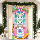 Easter Bunny Door Cover 71x35 Inch Easter Door Banner Cute Rabbit Floral Spri...