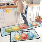 Easter Eggs Decorative Kitchen Rugs Set of 2, Watercolor Eggs Welcome Easter ...
