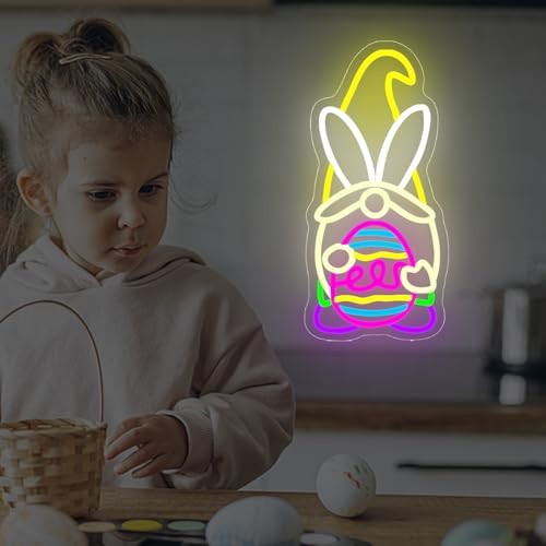 【Surprise Gift】This Easter gnomes egg neon light is not only a highlight of home decoration, but also a perfect gift for friends and family. The creative bunny design inherits the tradition of Easter while incorporating modern decorative style. The easter gnemes neon light is an ideal holiday gift for family, friends or colleagues, and a small Easter party gift that can bring laughter and warmth.
