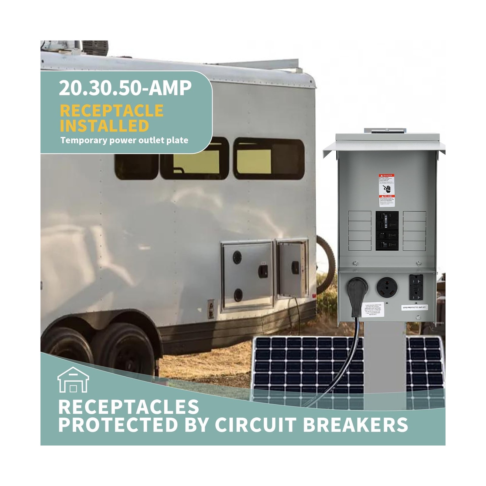 Scope of Application:the RV/EV power outlet box is designed for both indoor and outdoor electrical installations, meeting the needs of RV parks, home garages, backyards, and construction sites. This allows for safe and reliable power access wherever you need it