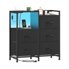 Somdot Black Nightstand with Charging Station and LED Light, Wide 5 Drawers D...