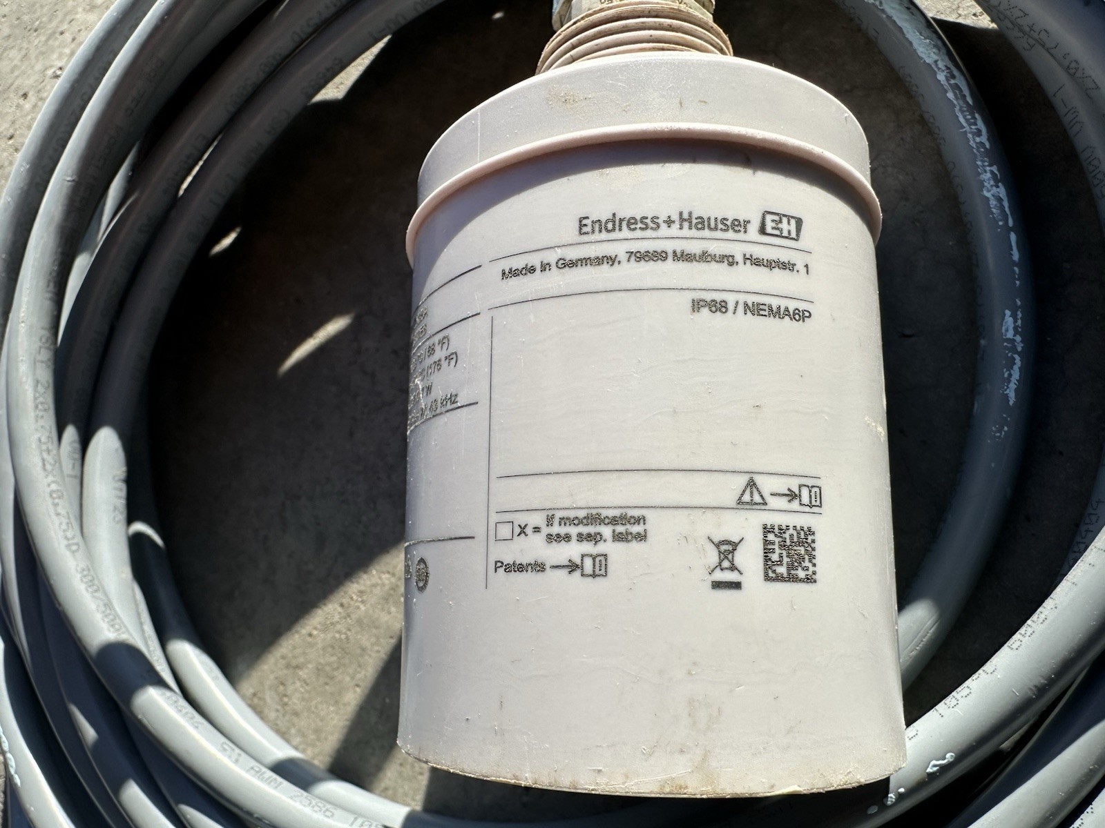 Lightly used Prosonic S ultrasonic level sensor. 10m (32ft) cable. Two-part epoxy paint exists on the cord grip but the unit is functional.