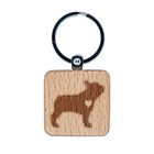 French Bulldog Dog with Heart Engraved Wood Square Keychain Tag Charm