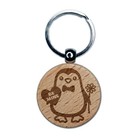 Penguin with Heart and Flower Valentine Engraved Wood Round Keychain Tag Charm