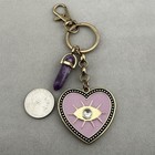 Evil Eye Pink Heart Charm Purple Crystal Amulet Good Luck Keychain #62718