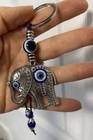 Elephant Silver Tone Blue Evil Eye keychain keyring Protection Luck Charm NEW