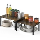 Expandable Stackable Cabinet and Counter Shelf Organizer with Wooden Surface,...