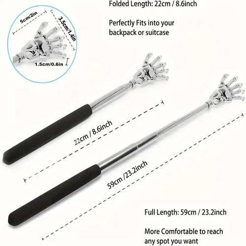 Portable telescopic:Back scratcher has a collapsed length of 8.66 inch/21cm and an extended length of 23 inch/53cm, giving this item the benefit of being both compact and extendable.You can carry and use it anywhere, anytime.