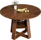 47" Round Extendable Dining Table w/Storage for 4-8 Seats, Walnut Finish