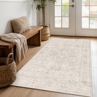 FMFUNCTEX 3x5 Washable Area Rug Beige Vintage Neutral Distressed Non Slip Low Pi