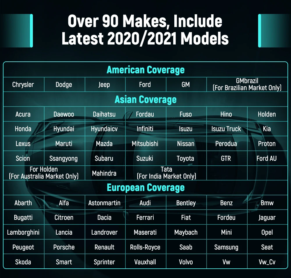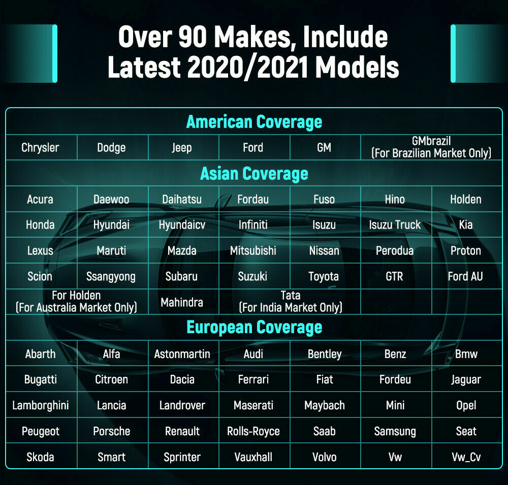 All System Diagnosis Support Over 90+ Makes, Include Newest 2020/2021 Car Models