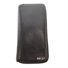 BALLY Leather Long Wallet Coin Purse Black Logo Double Zipper Used