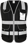 8 Pockets High Visibility Black Reflective Vest, Full Zip Heavy Duty Safety Vest