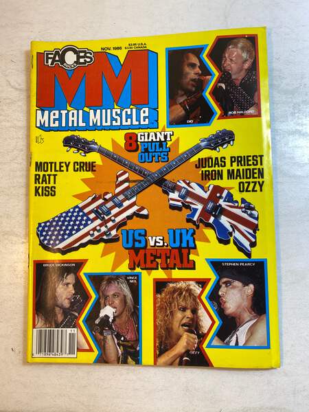 Item Details: Title: Faces Rocks Metal Muscle Issue: November 1986 Publisher: Captain Jack Copyright: 1986 Pullout posters intact Condition: Magazine shows moderate to heavy wear from age Some edge and spine wear Signs of reading present Magazines may have slight musty old book smell