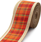 Fall Ribbons for Crafting, Thanksgiving Wired Edge Ribbon Orange Buffalo Plaid C