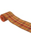 5 YD Fall Check Ribbon 2.5" Wired Edge Cream Green Orange Maroon Plaid Buffalo