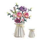 Flower Bouquet Building Blocks Artificial Pink Rose with Vase Botanical Colle...
