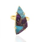 Copper Turquoise Gemstone Ring Yellow Gold Plated Prong Setting Adjustable Ring