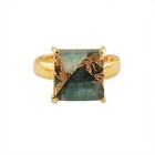 Copper Turquoise Jade Gemstone Ring Gold Plated Prong Setting Adjustable Ring