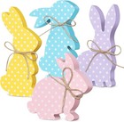 4 Pcs Easter Bunny Table Decor Bunny Table Wooden Signs with Rope Farmhouse Spri
