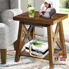 Rustic End Table, Farmhouse Side Table with Storage Shelf, Wood Rustic Brown