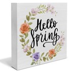 Hello Spring Wooden Sign Farmhouse Desk Decor Rustic Wood Block Plaque 5x5