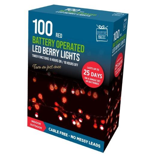 Festive Magic LED Battery Operated Timer Berry Lights 100 Red